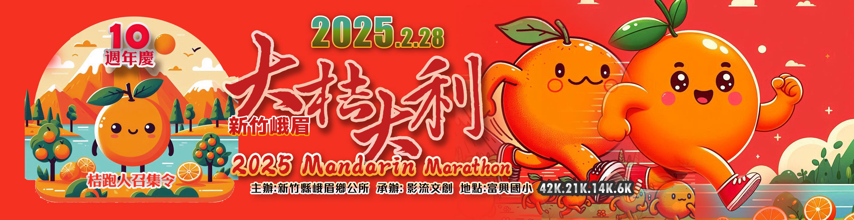 2025大桔大利馬拉松邁入十週年,我們已經準備了兩年,敬邀全國曾經參與過大桔大利路跑跑者回娘家,更歡迎所有跑團跑者一起來體驗峨眉鄉的好山”好水果”,規劃的本次馬拉松活動特色如下